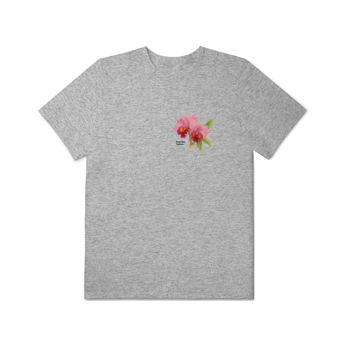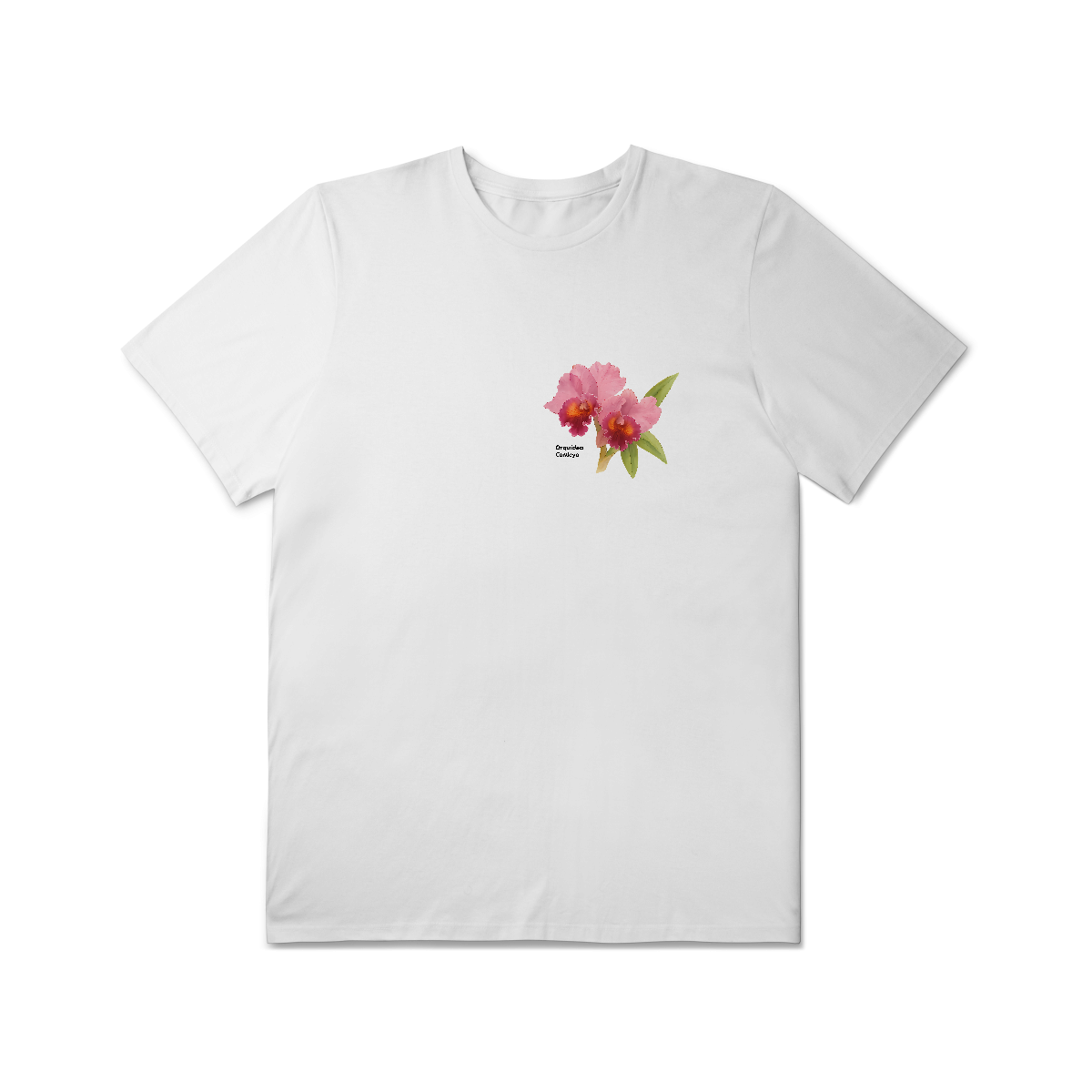 A Camiseta Feminina Plus Size com estampa de orquídeas Cattleya em aquarela foi criada para realçar sua beleza natural com arte e conforto. A delicadeza das pétalas em tons de rosa e o contraste vibrante do labelo em amarelo e vermelho trazem sofisticação e leveza, resultando em uma peça única que combina natureza e moda.